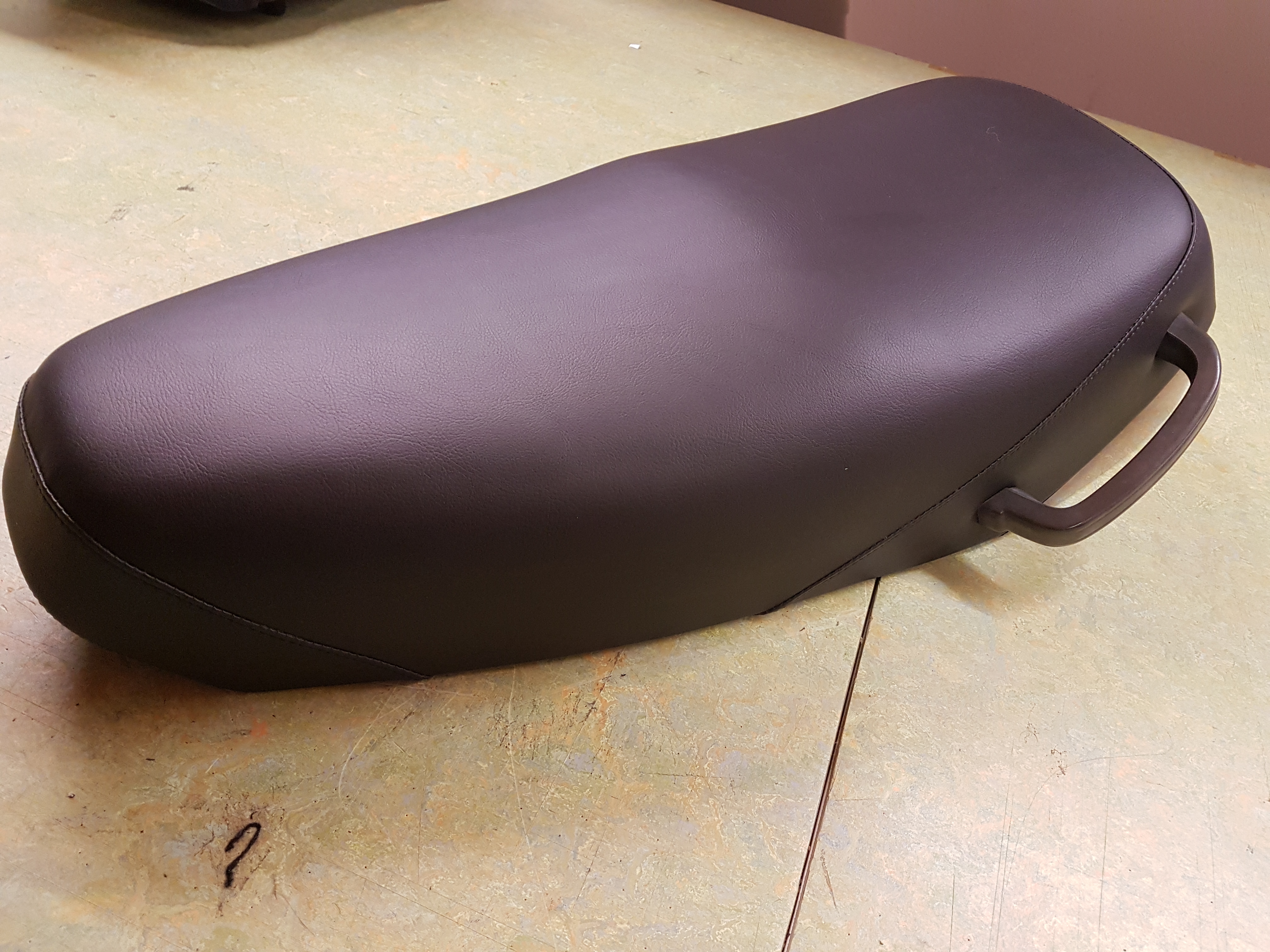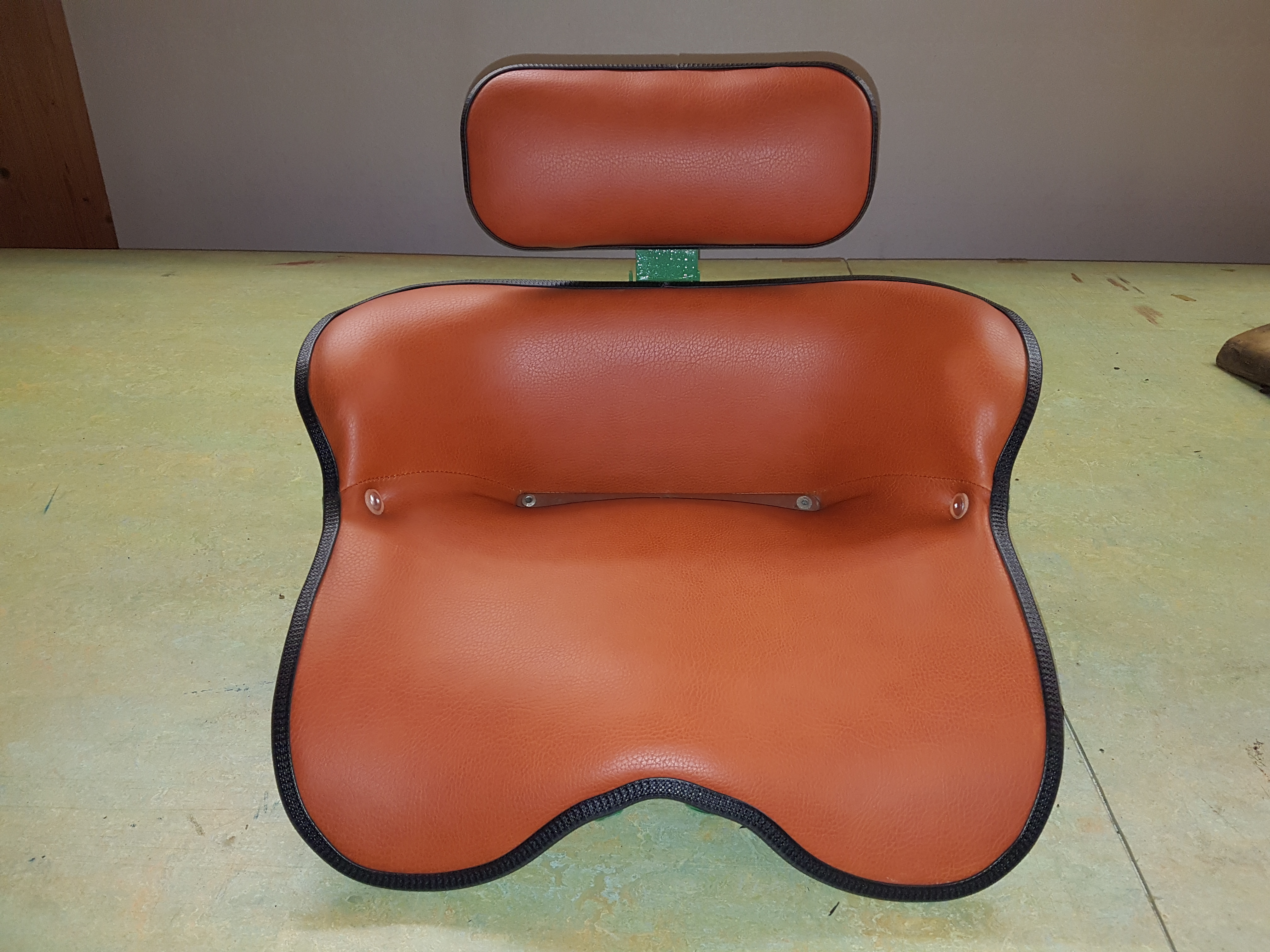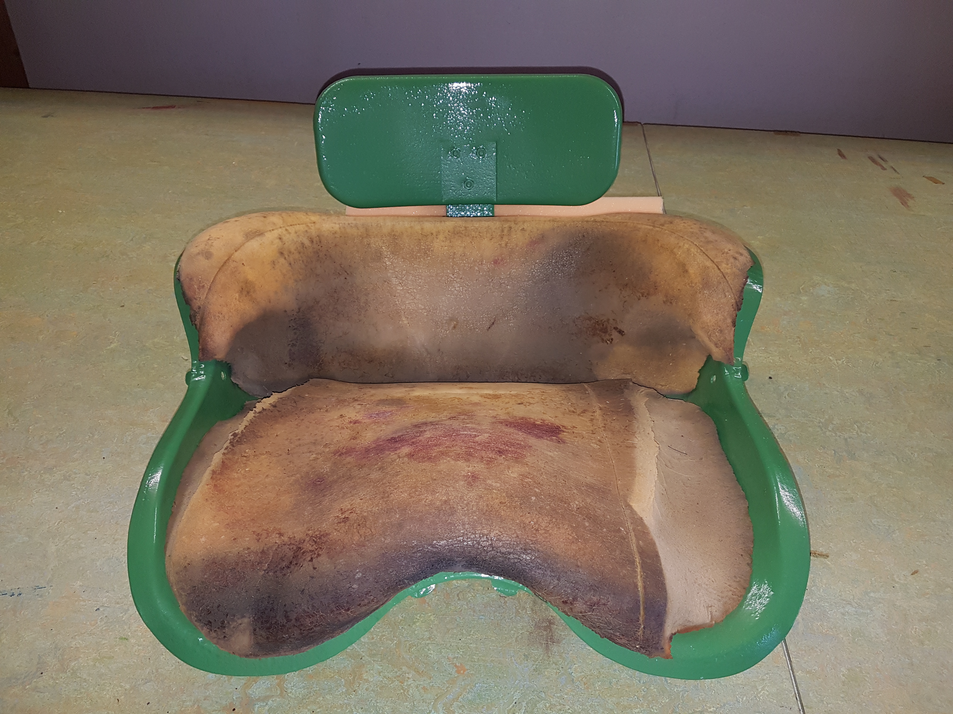 Traktorsitz - Schaumstoff instandgesetzt und mit braunem Kunstleder neu bezogen