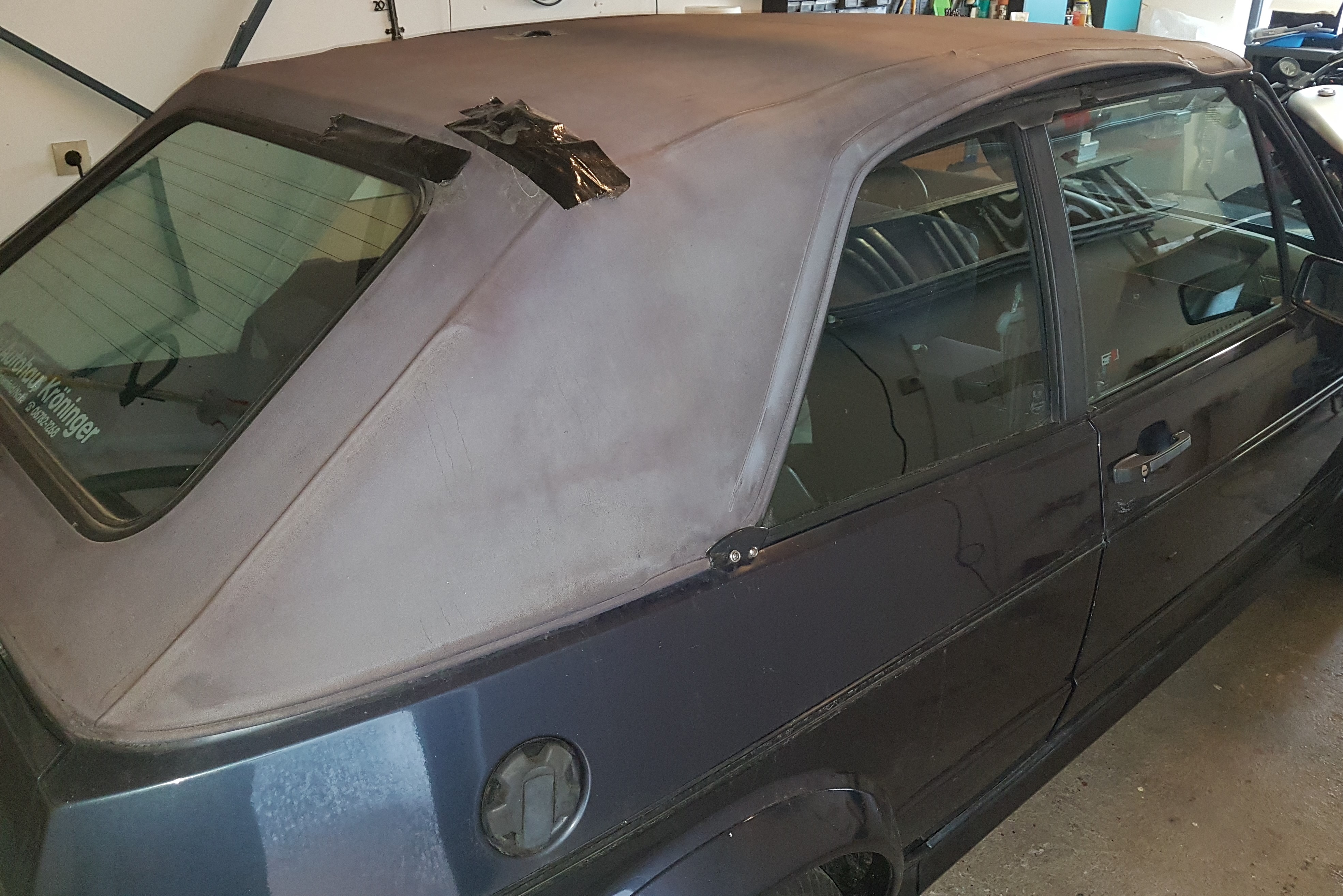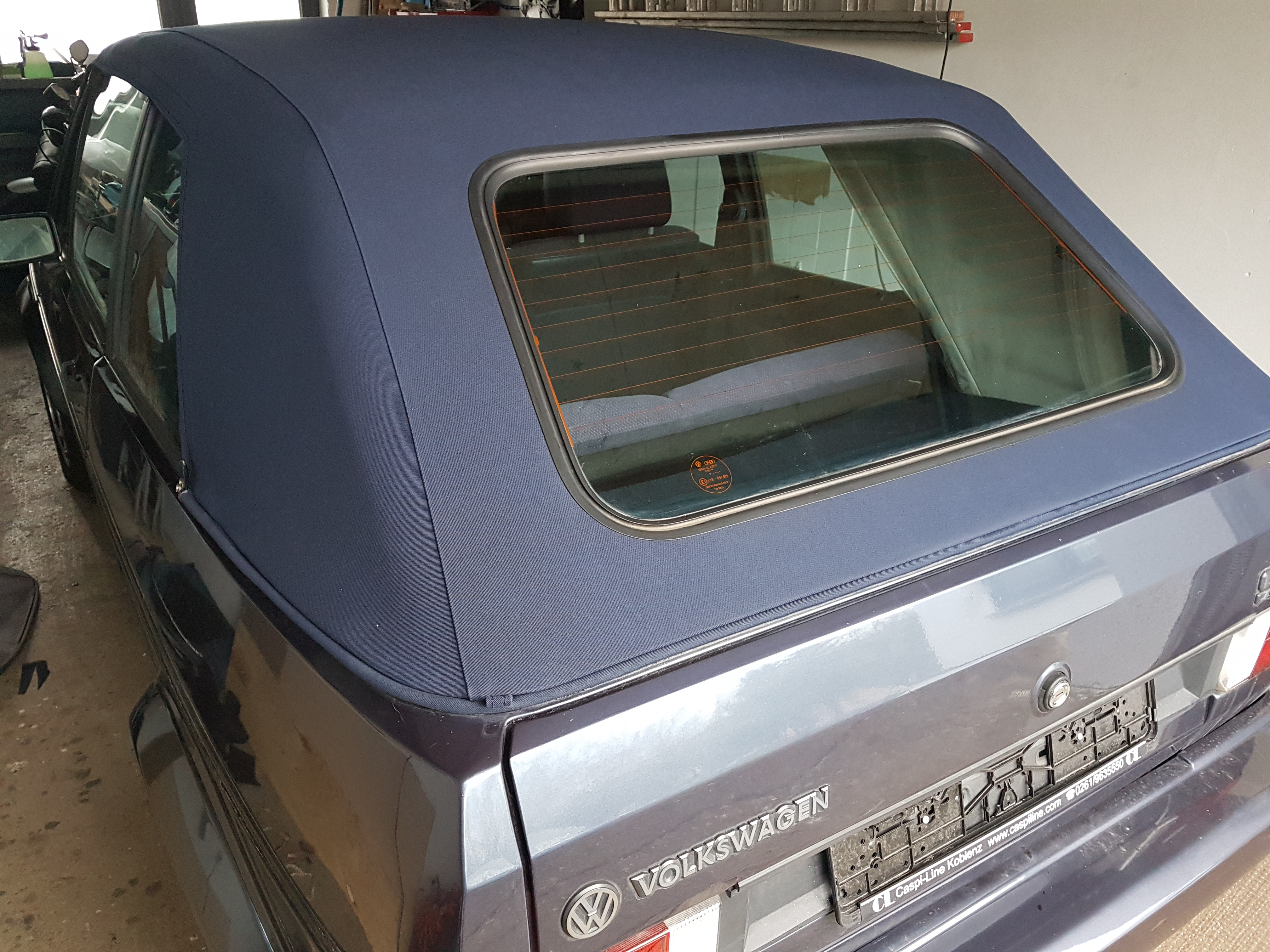 Golf 1 Cabrio nachher : Polsterung instandgesetzt und ein neues Sonnenland Verdeck in blau montiert