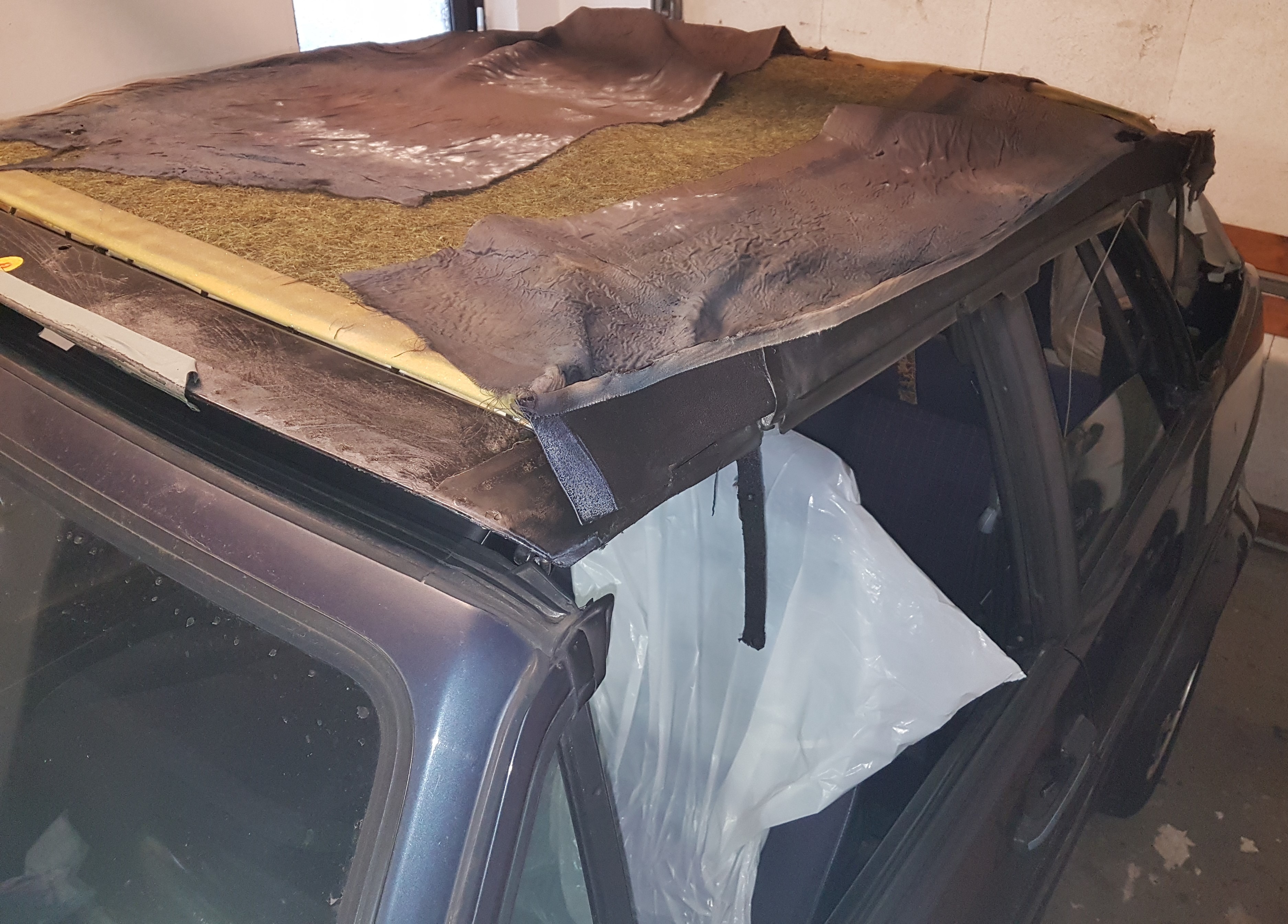 BMW E30 Innenhimmel mit schwarzem Himmelstoff neu bezogen